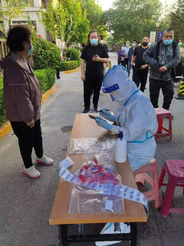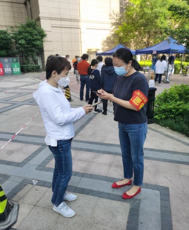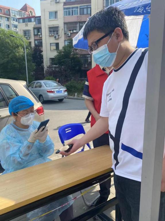 党委教师工作部(人事处)党支部张潆心协助社区和医务人员进行扫码和秩序维护工作,她5月22日凌晨4点准时到达社区采样点,历时5个多小时完成本小区900位居民的核酸采样工作。