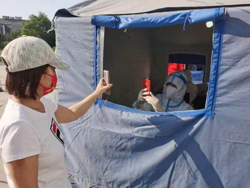 项目创新中心党支部运晨于5月15日、21日、22日积极参加西青区李七庄街新都庄园社区全员核酸检测志愿服务活动。在志愿服务工作安排中,她每次都主动申请第一班岗,最早的一次是凌晨4点多到岗,承担喊楼的工作。她所在的社区面积比较大,涵盖6个居民区,她负责其中2个居民区的喊楼工作。每次她都要走遍每个小区,喊遍每栋楼,督促社区居民早起早去,确保当天社区大筛工作能够按时顺利完成。在抗疫工作中,她一直抱着“革命同志是块砖,哪里需要哪里搬”的念头,坚决服从社区的岗位安排。在最近的一次服务活动中,因紧急缺人,她被安排到信息录入的关键岗位。第一次参与此项工作,她认真细致地学习了手机扫身份证、扫二维码和手工录入的操作流程,弄清楚封管、封箱、开箱的注意事项,确保核酸检测数据准确无误。在录入过程中,突遇系统瘫痪,眼见原本顺畅有序的队伍变成浩浩荡荡的大长队,居民们在太阳下暴晒,其中有80多岁的老人,还有几岁的孩子,她心急如焚,不停地做着居民的安抚工作,给老人拿椅子,跟小朋友聊天,缓解大家的急躁情绪。虽然天气炎热,工作完成时已经全身湿透,但是能够化身志愿红和抗疫白,守护广大群众的生命健康,她认为一切都是值得的!